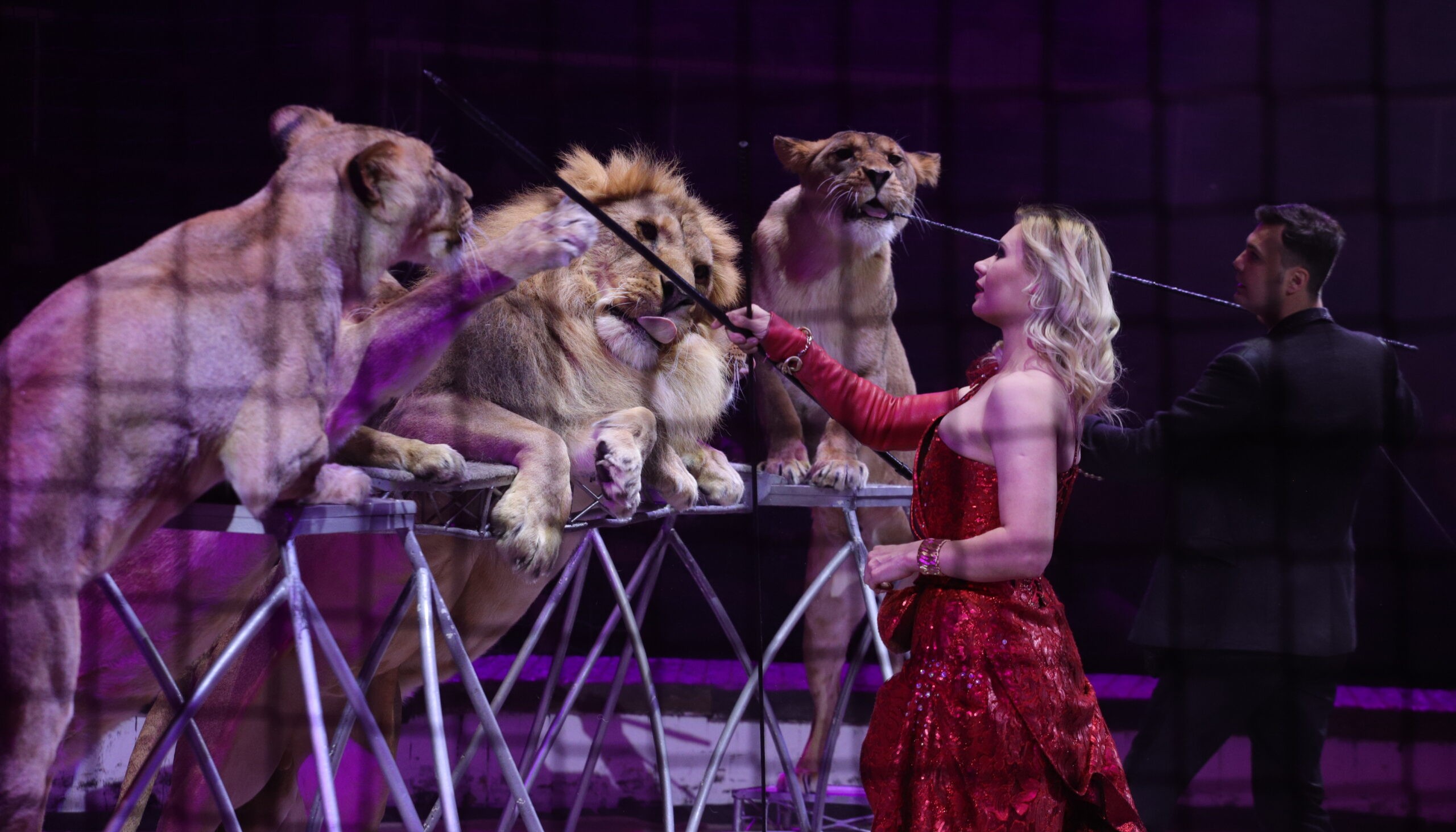 - Алжирские львы — мощные, величественные короли арены. Их появление на манеже — это момент, когда весь зал замирает.