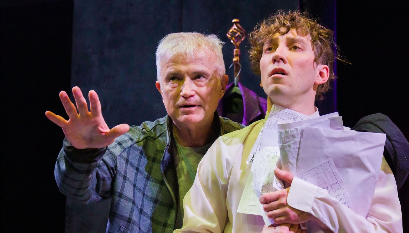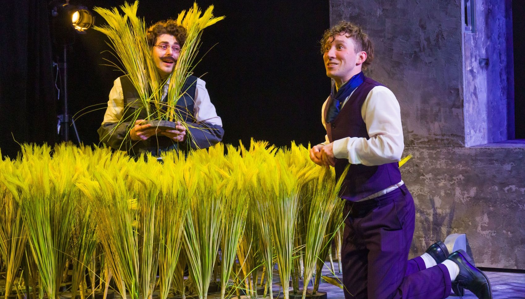 Сценографию и костюмы сочинила и разработала Катерина Ламыкина. Пространство подчёркнуто вневременное; можно представить, что город N существует и сейчас. Вместе с композитором и саунд-дизайнером Глебом Патрикеевым мы продолжаем разрабатывать особый жанр этой истории, который сформулировали как экзистенциальный фарс. Персонажей артистам помогает создавать режиссёр по пластике Александра Колосовская.